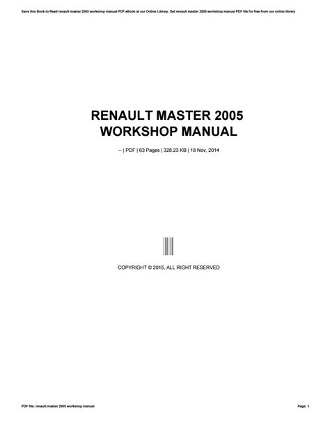Read renault master 2005 workshop manual Epub